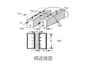 當兩個相鄰導體流過方向相反的電流時,相互之間會發生磁動勢,則磁動勢在對方導體中會發生渦流,引起損耗。