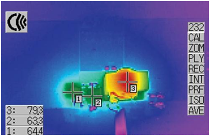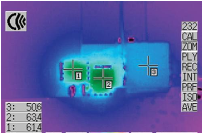 不同工作模式的效率如圖 3 所示。在 12V 輸入電壓時,滿負載效率高達 90.3%。與采用 1m? 采樣電阻器和具備相同功率級設計的電源相比,這大約改善了 1.4%。在沒有任何空氣流動時,熱點 (底部 MOSFET) 的溫度僅上升 39.6°C (如圖 4 所示)。在這張圖中,環境溫度大約為 23.8°C。EFFICIENCY:效率