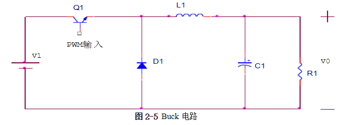由(2-5)式可知,通過改動開關管的占空比能夠控制輸出平均電壓的大小。由于占空比總是小于1,所以V0總是小于V1,所以說Buck電路是降壓電路。