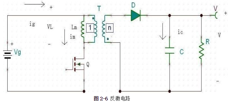 現在來分析它的工作原理:當Q導通時,二極管截止,根據電路知識可知此時VL=Vgic=-V/R;當Q截止時,二極管D導通,VL=-V/nic=i/n-V/R。由伏秒平衡和電容充放電平衡可得: