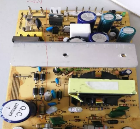 開關(guān)電源實(shí)際上是由交流、直流、交流、直流變換的過程,是將220V交流電通過整流濾波后變成300V直流電,再通過開關(guān)變壓器的儲(chǔ)能電感、開關(guān)管將直流電壓變換成多種電壓等級(jí)的交流電壓,再整流濾波后變成直流電壓輸出驅(qū)動(dòng)負(fù)載正常工作。下圖是一個(gè)開關(guān)電源,輸出5V、12V、24V。