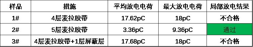 可以看到,僅有2#  5層麥拉膠帶的變壓器樣品通過了局部放電測試。