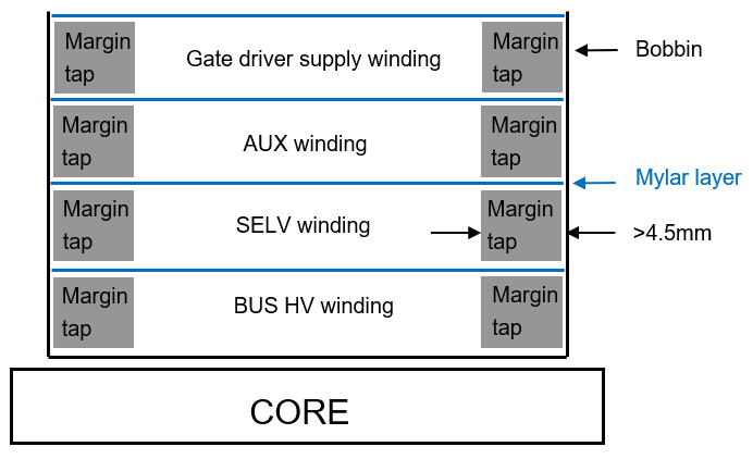 另外,SELV繞組的出線,除了需要用鐵氟龍套管穿管外,建議最好不要與一次側高壓繞組的出線端交叉。