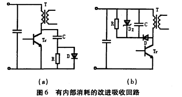 給開關管附加吸收電路,可防止開關管在關斷瞬間發射極和集電極間出現迅猛上升的電壓,保證不超出發射極–集電極電壓的安全工作范圍,同時也減少向外發出的干擾。但這種吸收電路如果一味地減小開關管的關斷功耗,當開關管接通時,吸收電路放出其中積蓄的能量,反而增加功率損耗,造成效率降低。因此,改進吸收回路也是提高效率的-一個重要方面。常用的改進吸收回路有兩種形式,即有內部損耗的和能把吸收功率送回電源的。