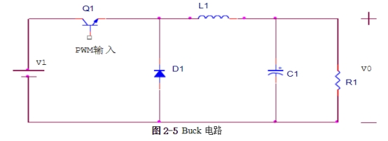 由(2-5)式可知,經過改動開關管的占空比可以操控輸出平均電壓的巨細。因為占空比總是小于1,所以V0總是小于V1,所以說Buck電路是降壓電路。