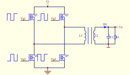 全橋式:電路由Q1、Q2、Q3、Q4組成橋式電路,如圖中所給出的信號,Q1和Q4先導通,Q2、Q3截止。電流流向:電源正→Q1→L1→Q4→電源負。后半周Q1、Q4截止,Q2、Q3導通,電流流向:電源正→Q3→L1→Q2→電源負。操控電路略微有點凌亂,需求四組不共地的驅動信號。電路不允許Q1和Q2一同導通,也不允許Q3和Q4一同導通,一同導公例意味著電源短路,Q1、Q2、Q3、Q4會炸飛的。一同假如Q1、Q4與 Q2、Q3的導通時刻不對稱,那么,L1的交通電壓就會呈現很大的直流重量,形成磁飽滿。