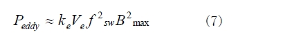 渦流損耗比磁滯損耗小得多,但跟著作業頻率的進步而敏捷添加,如式(7)所示。