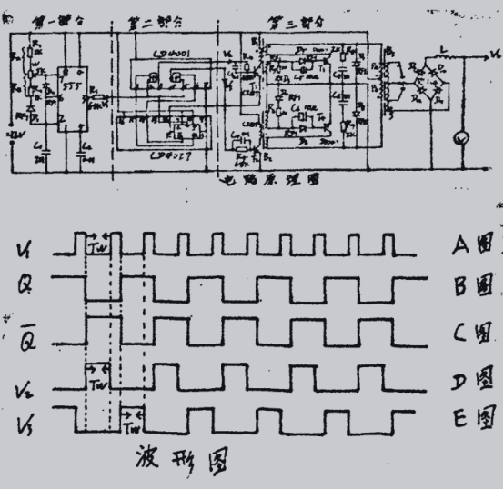第二局部:這局部是由JK觸發器CD4027(只用一個y和四個輸入或非門CD4001(只用2個)組成。這局部電路完成脈沖信號的邏輯關系。V作為K觸發器的時鐘信號。每當時鐘信號的降落沿到來時,JK觸發器的Q端和Q端電平都將發作反轉,如圖B和圖C。由于或非門的2角和5角信號為V,1角信號為Q.6角信號為Q,我們曉得或非門只要輸人端同時為低電平常.輸出才為高電平。所以3角輸出波形V如圖D.4角輸出波形V,如圖E,它們的脈沖寬度為Tw。