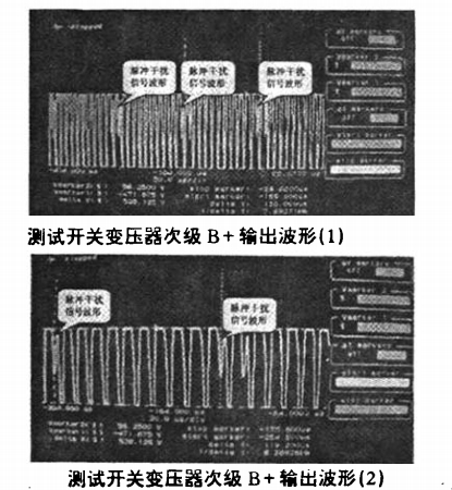 鑒于上述作業(yè)原理,對缺點(diǎn)現(xiàn)象及緣由剖析:我廠出產(chǎn)的AT2516UG機(jī)器,在電源作業(yè)時,開關(guān)變壓器有顯著的“哧、哧”聲,根據(jù)以往閱歷判別此響聲為開關(guān)變壓器作業(yè)時發(fā)作的噪聲。由此,對開關(guān)變壓器次級(12)B+腳停止波形檢驗,細(xì)致檢驗如下: