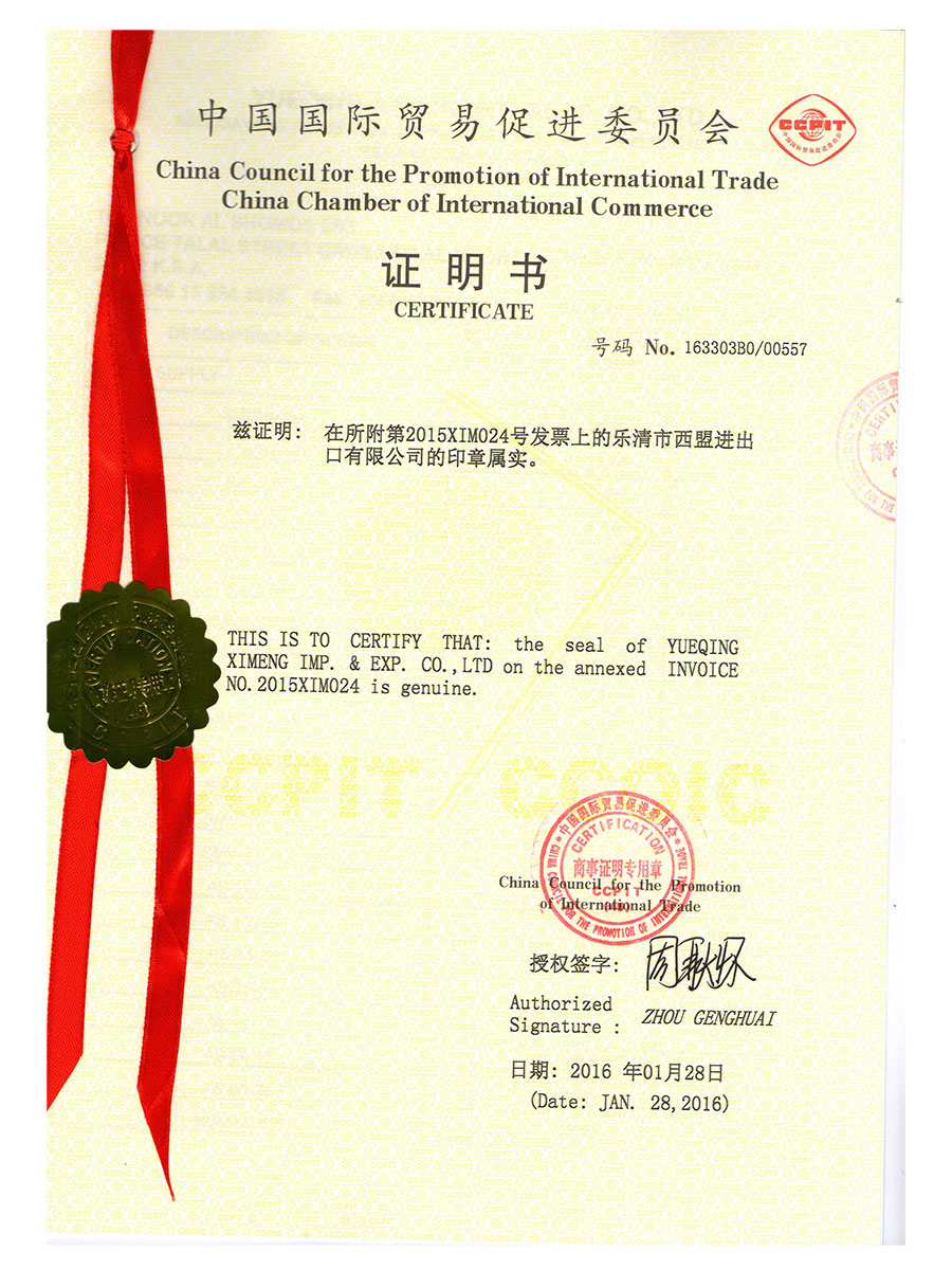 中國(guó)國(guó)際貿(mào)易促進(jìn)委員會(huì)證書(shū)2